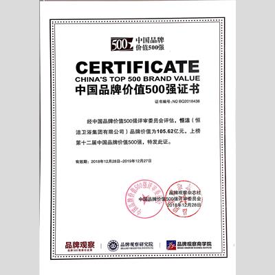 奖 项:2018中国品牌价值500强企业