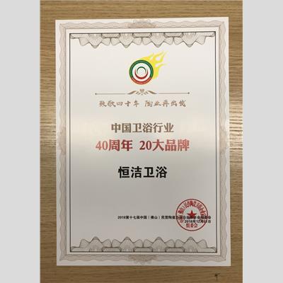 奖 项:中国卫浴行业四十年 20大品牌