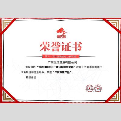 奖 项:第十二届中国陶瓷行业新锐榜-年度最佳产品(H0986)