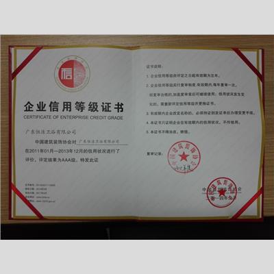 奖 项:企业信用等级证书AAA级-复审通过