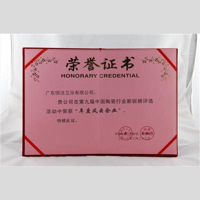 颁发单位:中国建筑卫生陶瓷年鉴、华夏陶瓷网、佛山市民营经济发展研究会