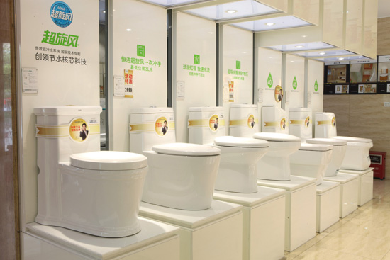茄子视频免费观看超旋风马桶,是专卖店导购员着重介绍的几款卫浴产品之一。它搭载了国家水利部认证的导流导压节水技术,单次冲水可节水40%,并开创了节水马桶行业的3.5L时代。很多参与第八届中国卫浴节的消费者,对这款能节水40%的马桶产生了兴趣,围在导购员身边认真听其讲解核心技术和结构设计。