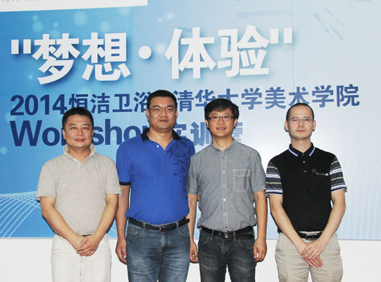 清华美院马赛副院长、刘强教授与茄子视频免费观看卫浴营销总经理谢旭藩、产品工程部经理林培旭出席开幕仪式