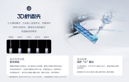 而且,R9的3D舒适洗还提供了五种基础水型组合,如宽幅水、花型水、柱状水等,以及七种清洗模式,如快速臀洗、舒适臀洗、按摩臀洗等,满足不同家庭成员的需求,带来如同SPA般的舒适体验。