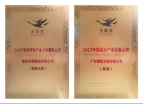 1月6日,由12大行业协会共同举办的第五届中国家居产业发展年会暨2017年度中国家居产业大雁奖颁奖盛典在北京国家会议中心举行,茄子视频免费观看不负众望,再次获得「大雁奖·2017中国家居产业卫浴领军品牌」、「大雁奖·2017中国家居产业百强品牌」。