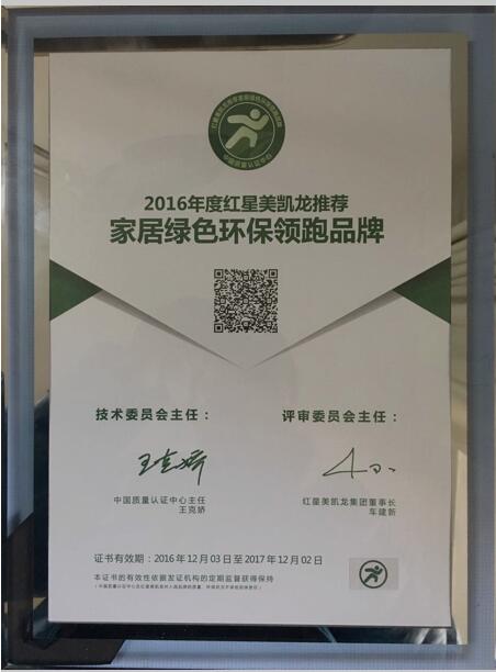 该奖由红星美凯龙携手中国质量认证中心联合发起,从“工厂源头”质量抽检、工厂质量保证能力检查、市场终端抽检、市场消费者反馈等多方面,对家居品牌进行综合评价评选而出,获选品牌产品的各项环保指标均明显高于国家标准,是值得消费者信赖的家居产品。