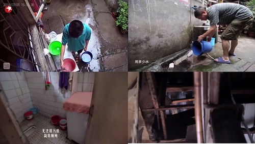 这间有着百年历史的典型“穿斗式”川西老宅,由于年久失修早已不见青砖石木的清雅原貌。不仅屋顶漏雨、房间潮湿、在生活上也极其不便,由于没有现代的供水系统,所有的用水都要靠人力端进去。房屋最原始的木结构房子,已经酥烂,几乎无法支撑自己本身的重量。整个宅子里没有排污设施,要上厕所只能去附近的商场,走一个来回要20分钟,王奶奶只能依靠一个痰盂解决个人问题。