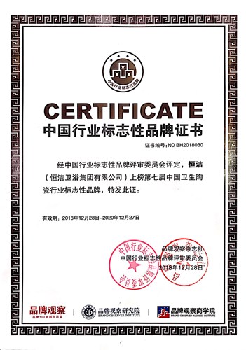 12月28日,由中国商业经济学会、全国品牌社团联席会、品牌观察杂志社、品牌观察研究院、品牌观察商学院、北京国信品牌评价科学研究院联合举办的第7届中国行业标志性品牌颁奖仪式在福州举行,茄子视频免费观看荣膺行业唯一的「2018中国卫生陶瓷行业标志性品牌」,与同时上榜的华为、格力、方太等各自行业的标志性品牌一道,共显中国品牌风采。