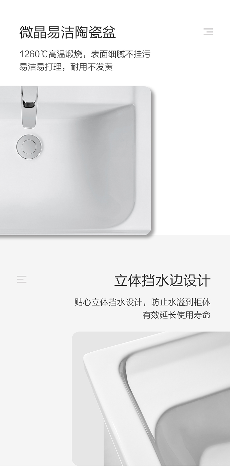 - 木合金柜体,防水防潮,随心安放;表面覆膜工艺,3D触感, 温润如木;