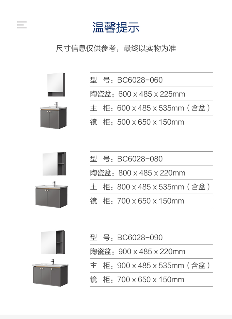 - 镜柜颜色:绅士灰