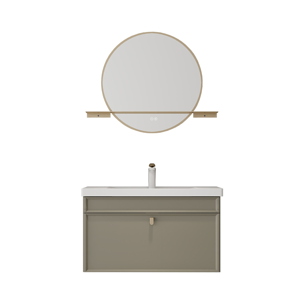 • 新中式设计元素:徽派建筑元素(吸塑造型门板提取马头墙元素,香槟金带纹理造型拉手提取飞檐和琉璃瓦元素),金属包边圆镜搭配触控氛围灯设计,传统与时尚碰撞,呈现新中式格调
