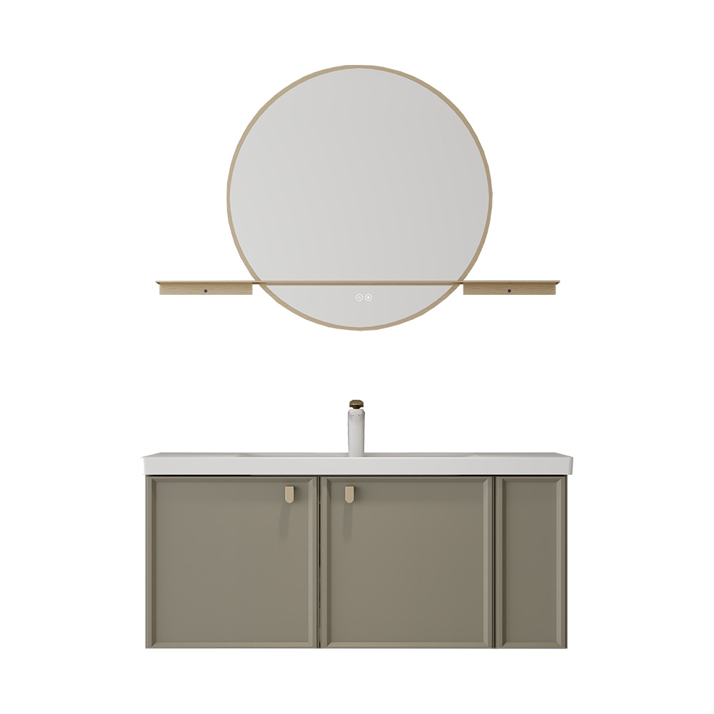 • 新中式设计元素:徽派建筑元素(吸塑造型门板提取马头墙元素,香槟金带纹理造型拉手提取飞檐和琉璃瓦元素),金属包边圆镜搭配触控氛围灯设计,传统与时尚碰撞,呈现新中式格调