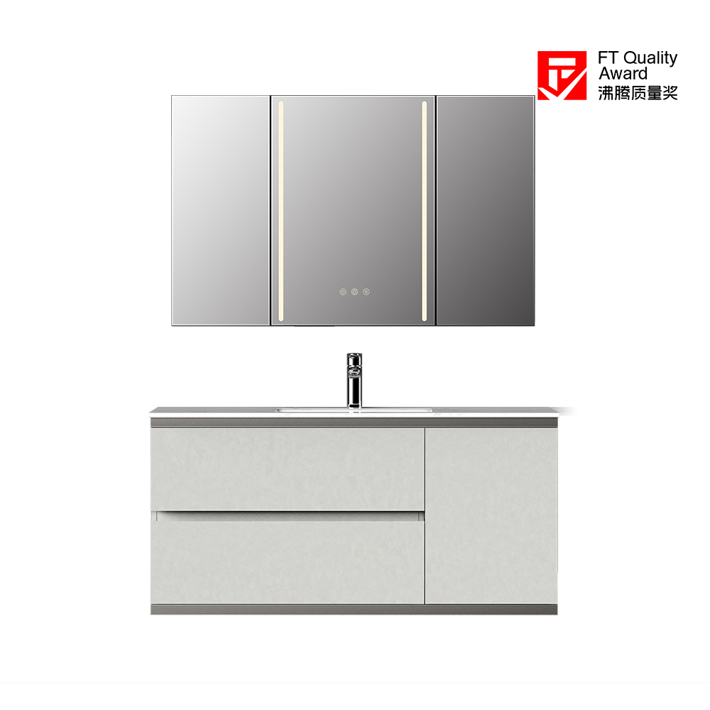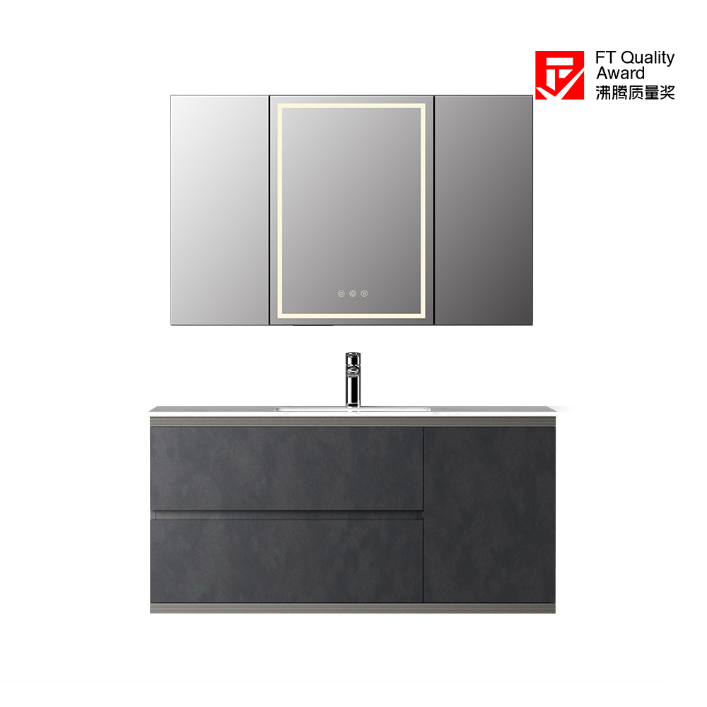 - 浅咖色+雀羽枫/斑影黑石+深灰龙羽两种配色方案,镜柜、台面、主柜可选定制。