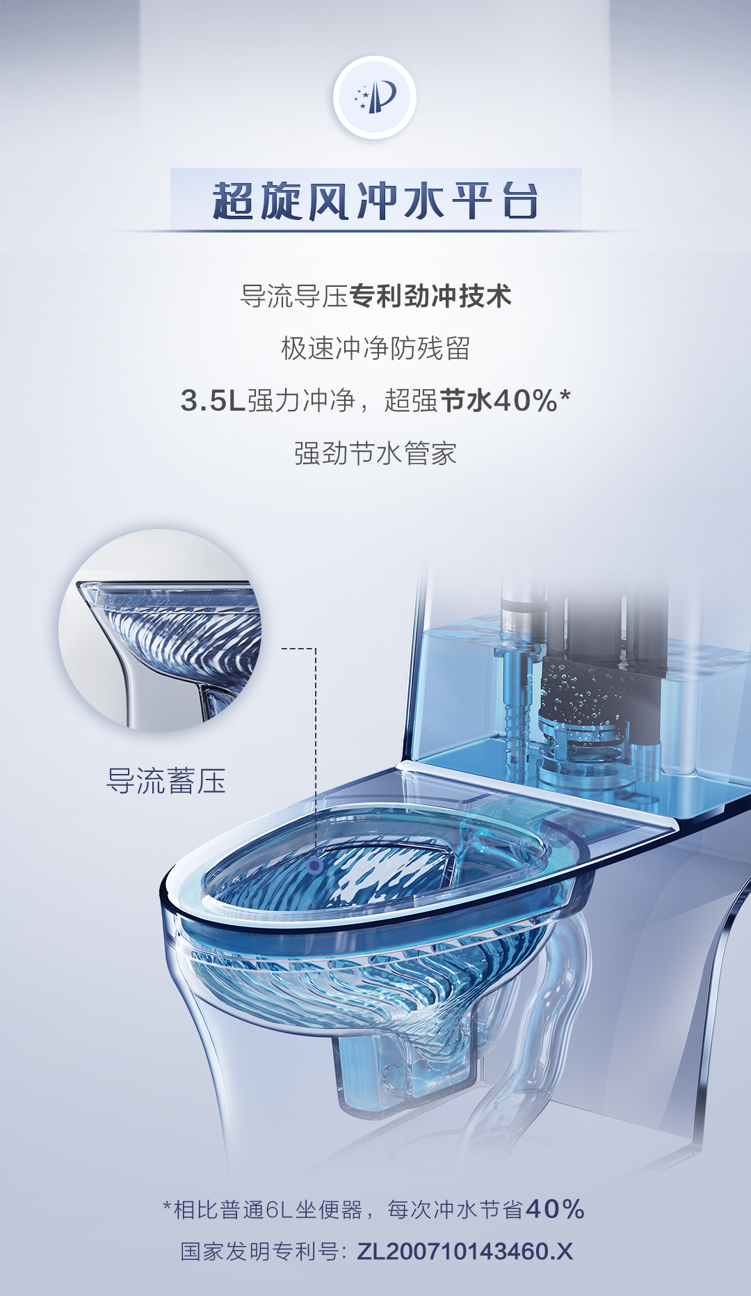 • 超旋风冲水平台:3.5L强力冲净,超强节水40%