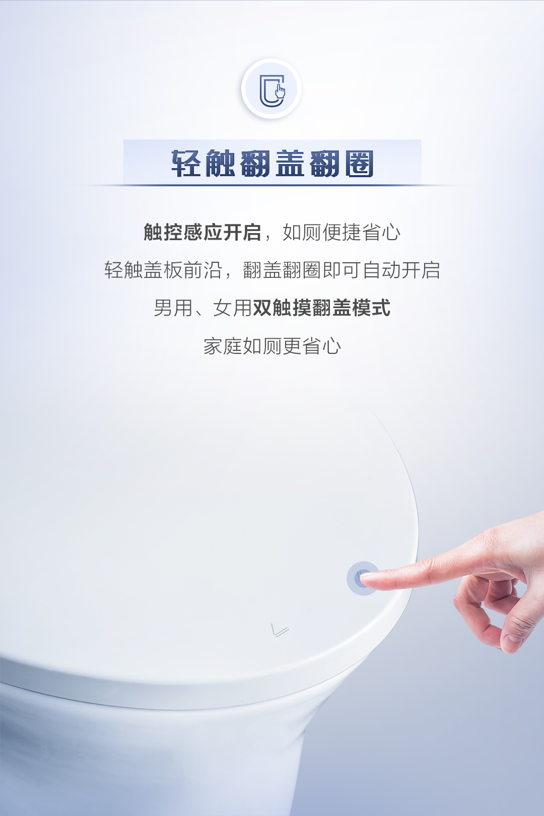 • 轻触翻盖翻圈:触控感应开启,如厕便捷省心