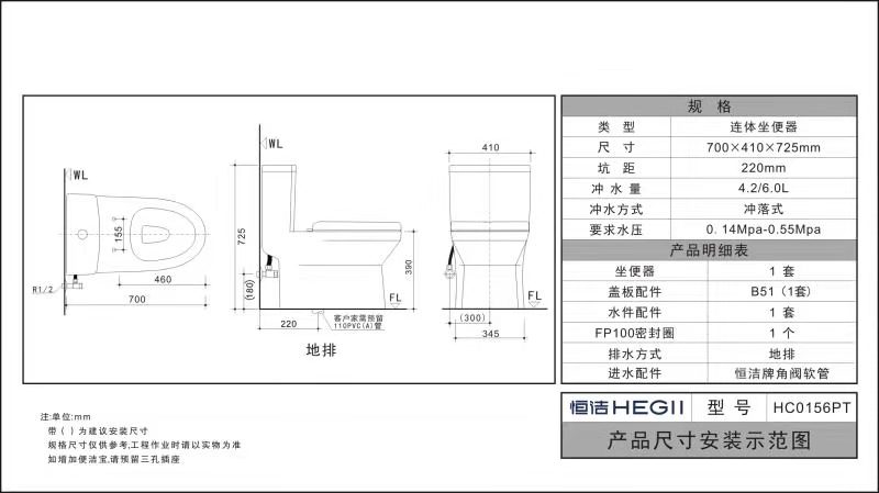 - 类型:连体座便器(地排)