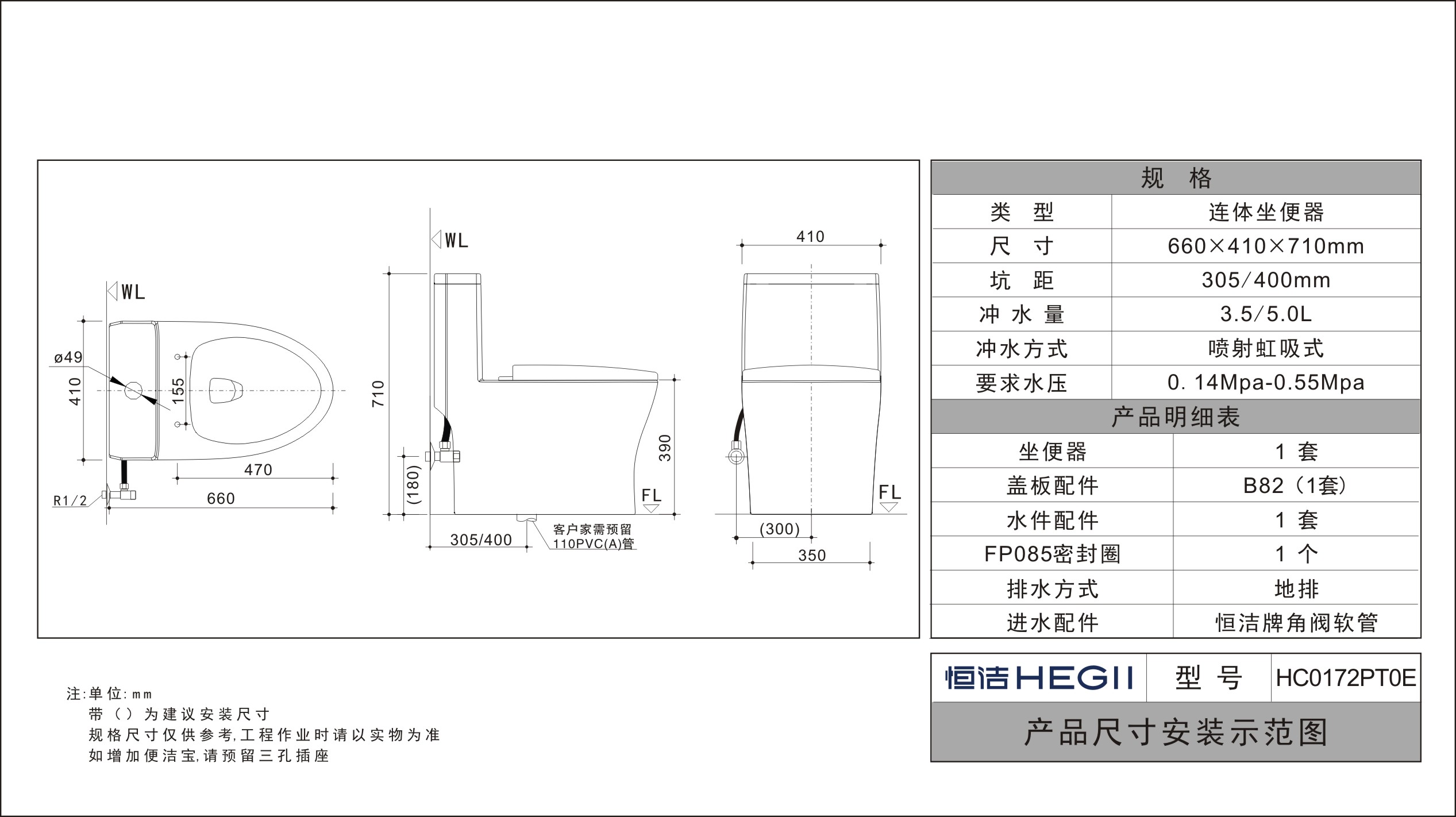 - 冲水量:3.5L/5L