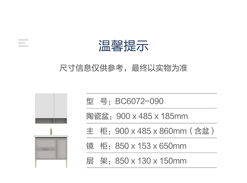 主柜尺寸:900x485x860mm(含盆)