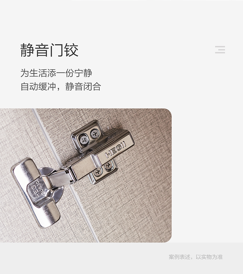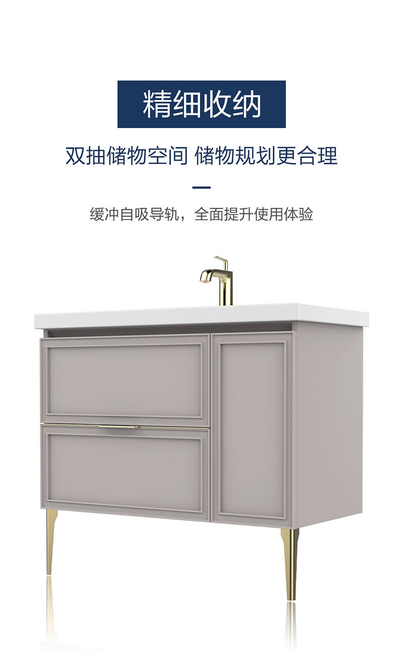 大容量储物空间:双抽搭配开门设计,储物规划更合理;缓冲自吸导轨,全面提升使用体验;