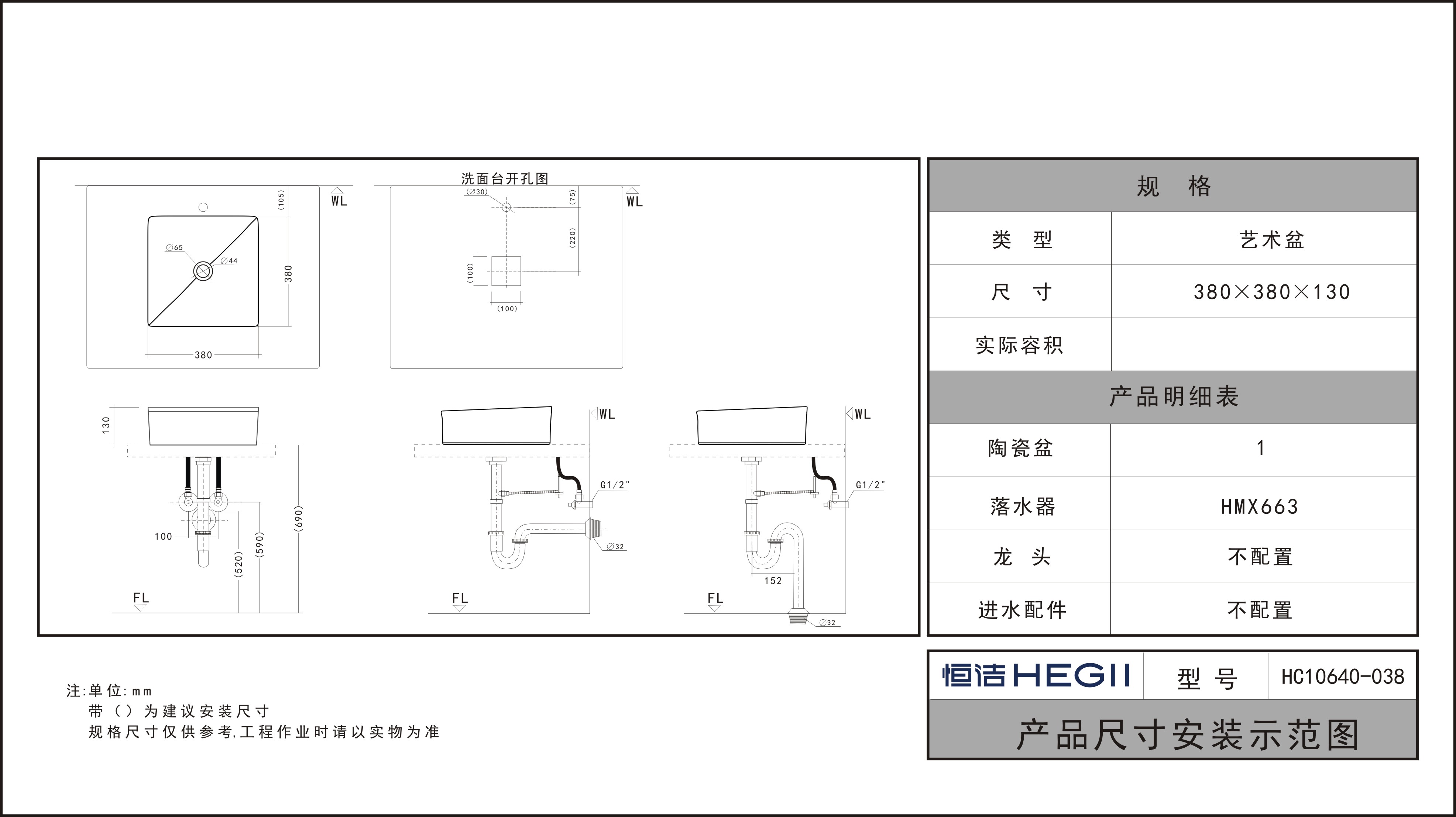 尺寸:380x380x130mm